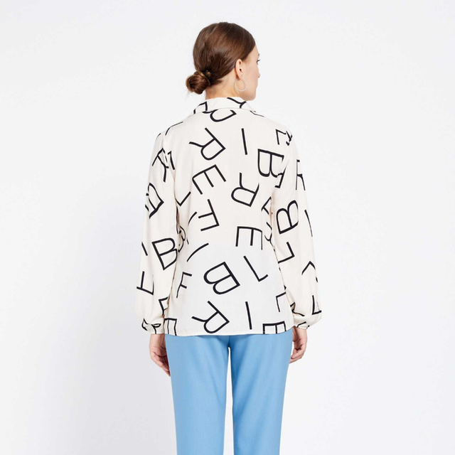 Knopfleiste vorne. Lange Ärmel mit Gummibund.
